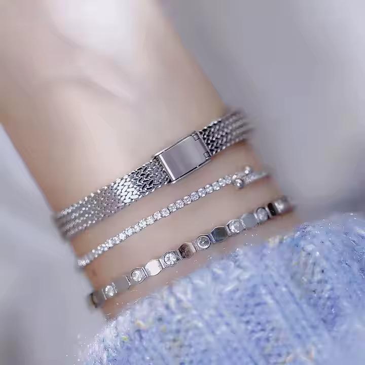 This exquisite timepiece combines the elegance of fine jewelry with the practicality of a wristwatch. Designed in a vintage-inspired round dial, it features a white face with gold-tone hour markers and hands, offering a sophisticated and timeless look.